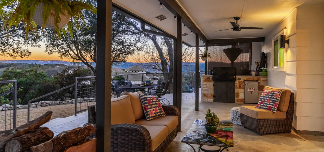 Live the LAKE LIFE at 1912 Highlands Drive inside Inverness Point, a hidden gem located just inside Spicewood next to Rough Hollow, Lakeway and Bee Cave. The original home, built in 1977, was transformed by the current owners when they purchased it in 2019. Modern updates were done with the extensive remodel that enhanced the incredible views of Lake Travis from all around the home. On the exterior, a slurry was done on the stonework, new composite decks and modern railing added, a stone patio and cook area in the back, exterior paint, carport converted to a two car garage and an additional +/-300 SQFT added for storage and workshop, floor to ceiling garage cabinets and a finished garage floor. In addition, gutters were added along with all new energy efficient doors and windows. Enjoy the low maintenance yard that is xeriscaped front and back. Ample parking with the driveway and circle drive that were recently resurfaced.The owners, both growing up in the Austin area, have a great appreciation for the "lake life vibe" and kept the original Saltillo tile that adorns the entry, living, kitchen, dining, hallway and secondary bathroom downstairs.